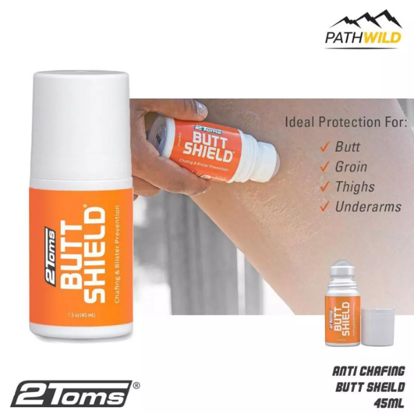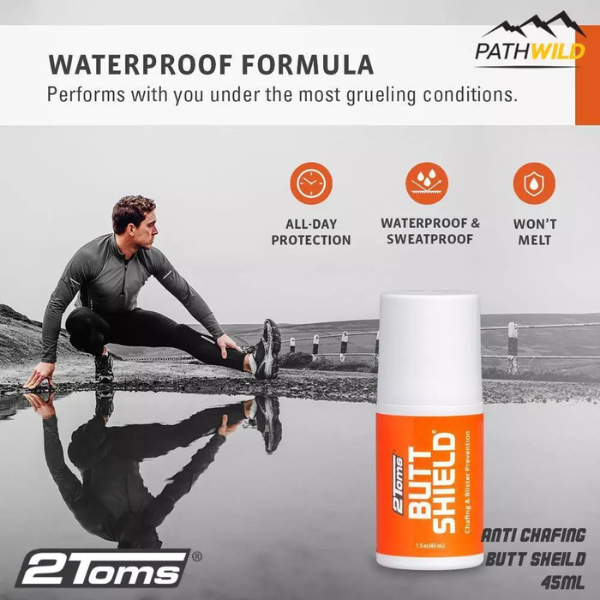 2Toms ButtShield Anti Chafing and Blister Prevention is formulated with your “danger zone” in mind.