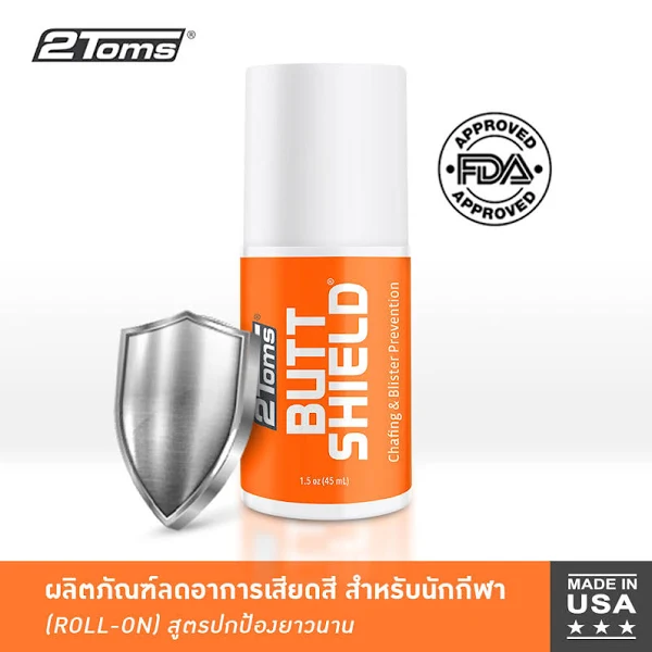 2Toms Sport Shield “เพิ่มเกราะป้องกันการเสียดสีกับโรออนป้องการเสียดสี 2Toms” 2Toms เป็นสินค้านำเข้า และเป็นแบรนด์จากสหรัฐอเมริกา