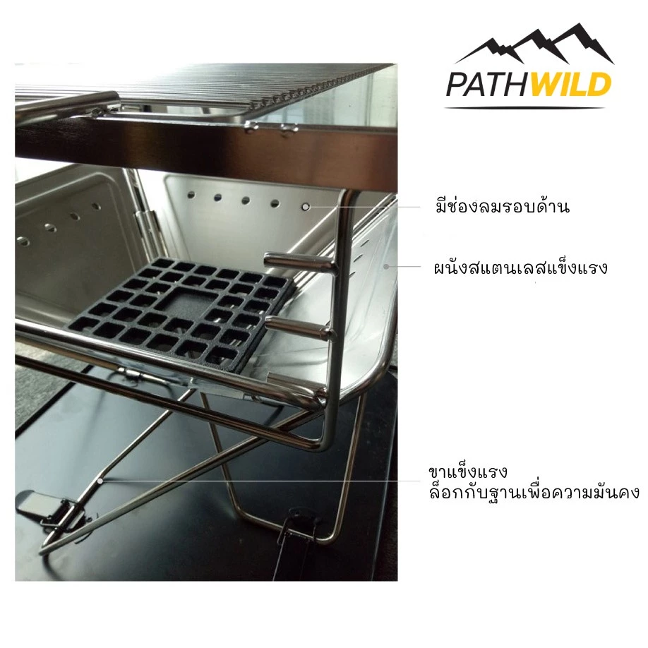 มีถาดรองขี้เถ้าด้านล่าง ไม่ทำลายพื้นลานกางเต็นท์