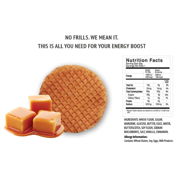 ความสะดวกในการพกพา ความหอมหวาน และปริมาณคาร์โบไฮเดรตสูงของ Bollox ‘ Energy Waffle, Dutch Style Caramel Waffle