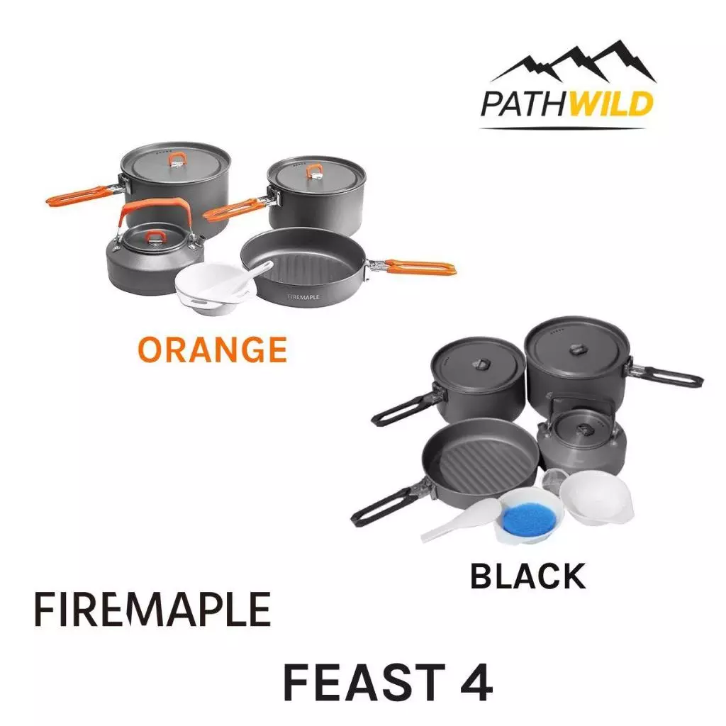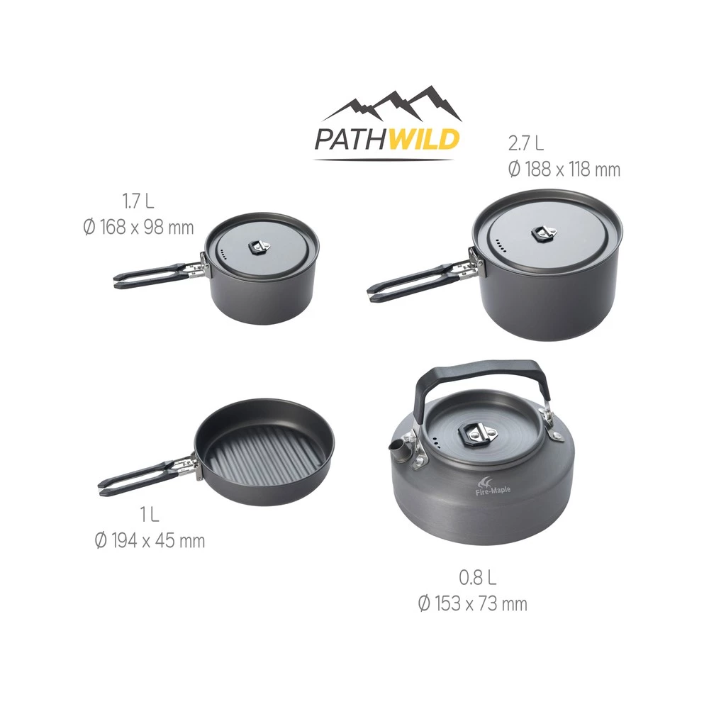 หม้อชุดสำหรับ Camping ชุดขนาด 4-5 คน หม้อเคลือบอย่างดี ทำความสะอาดง่าย ซ้อนกันได้ ประหยัดเนื้อที่จัดเก็บ มีจุดเด่นที่มีมือจับแบบพับได้ เมื่อกางออกจนสุดจะล็อกอัตโนมัติ เมื่อต้องการพับเก็บ แค่บีบตัวล็อกแล้วพับเก็บ ตัวมือจับมีการหุ้มเพื่อป้องกันความร้อน ฝาหม้อมีรูระบายความร้อน มีหูจับทนความร้อนที่พับได้ รูระบายความร้อนบนฝาหม้อ ใช้สำหรับรินน้ำออกได้ กระทะเป็นแบบมีลอน เหมาะกับการปิ้งย่าง ผลิตจากอลูมิเนียมเคลือบแข็ง ทำความสะอาดง่าย ไม่เป็นสนิม น้ำหนักเบา ให้ความร้อนได้เร็ว