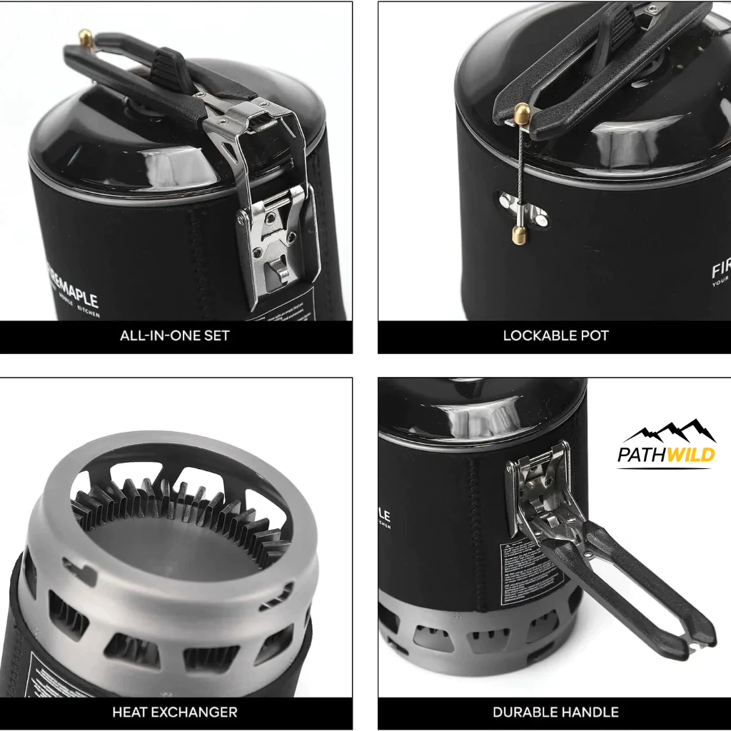ชุดเตาพร้อมหม้อที่ออกแบบมาให้ใช้งานร่วมกันได้อย่างตัว ด้วยหม้อขนาด 0.8 ลิตร ที่สามารถแพ็คเก็บเตาและแก๊สกระป๋องขนาด 110 กรัม ไว้ด้านในได้ ตัวเตากันลมได้ดี พร้อมด้วยก้นหม้อที่มี Heat Exchanger ช่วยให้กระจายความร้อนได้เร็วและประหยัดพลังงาน จุดเตาได้ง่ายด้วยที่จุดในตัว มาพร้อมขาวางหม้อ ทำให้สามารถจับหม้อหรือกระทะอื่นๆ ได้ ให้คุณทำอาหารได้อย่างหลากหลาย