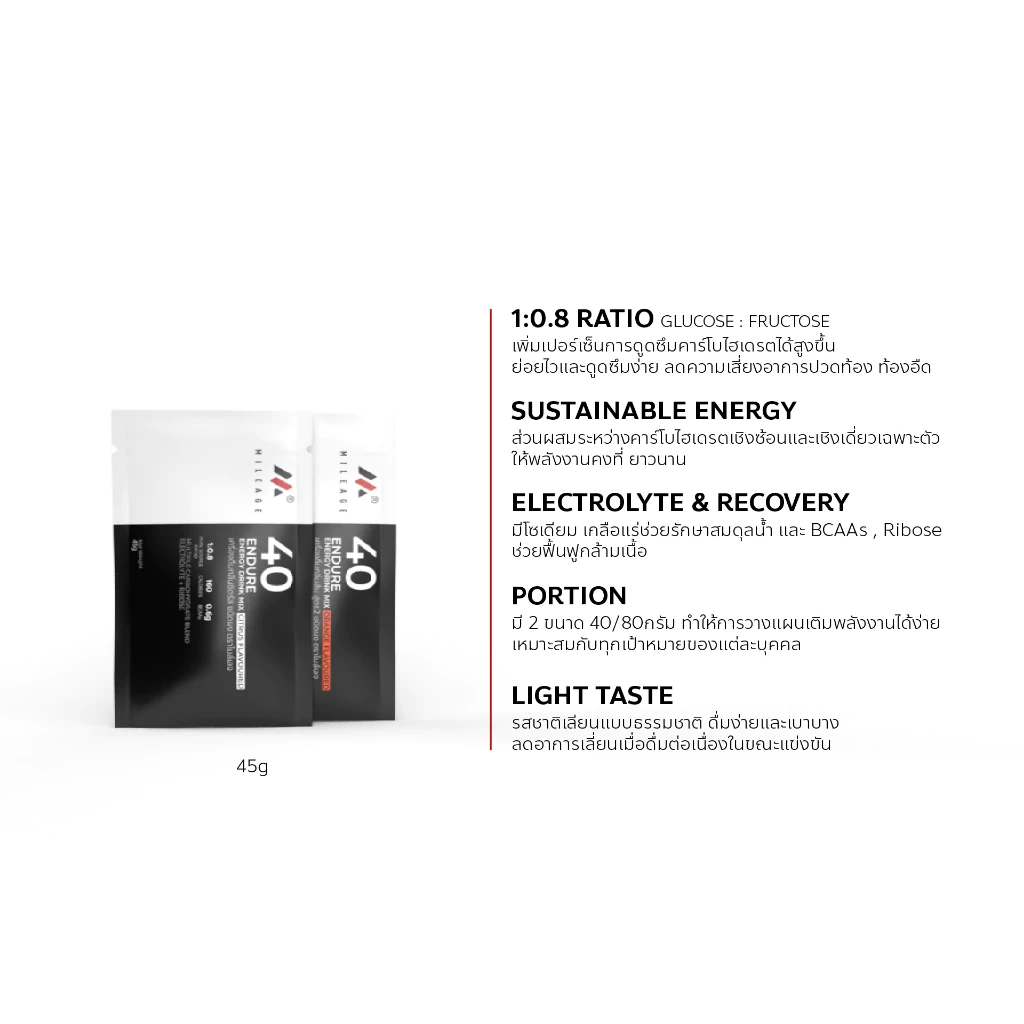 ผงชงดื่มให้พลังงาน MILEAGE ENERGY DRINK MIX 40 Endure เหมาะกับการออกกำลังกาย และเล่นกีฬา