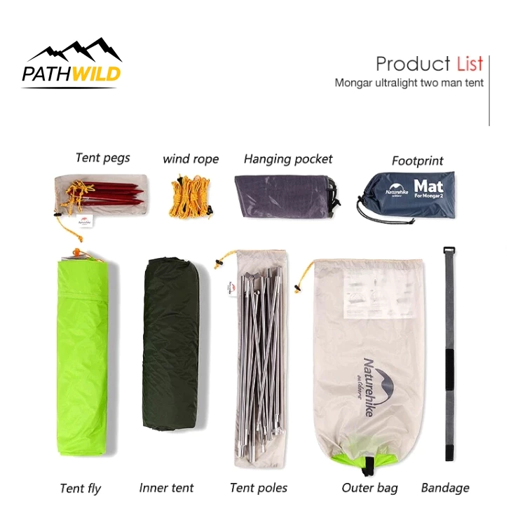 - ชั้นนอกเป็น Rainfly เนื้อผ้า Nylon ขนาด 20 D เคลือบซิลิโคนด้านในเพื่อป้องกันน้ำ