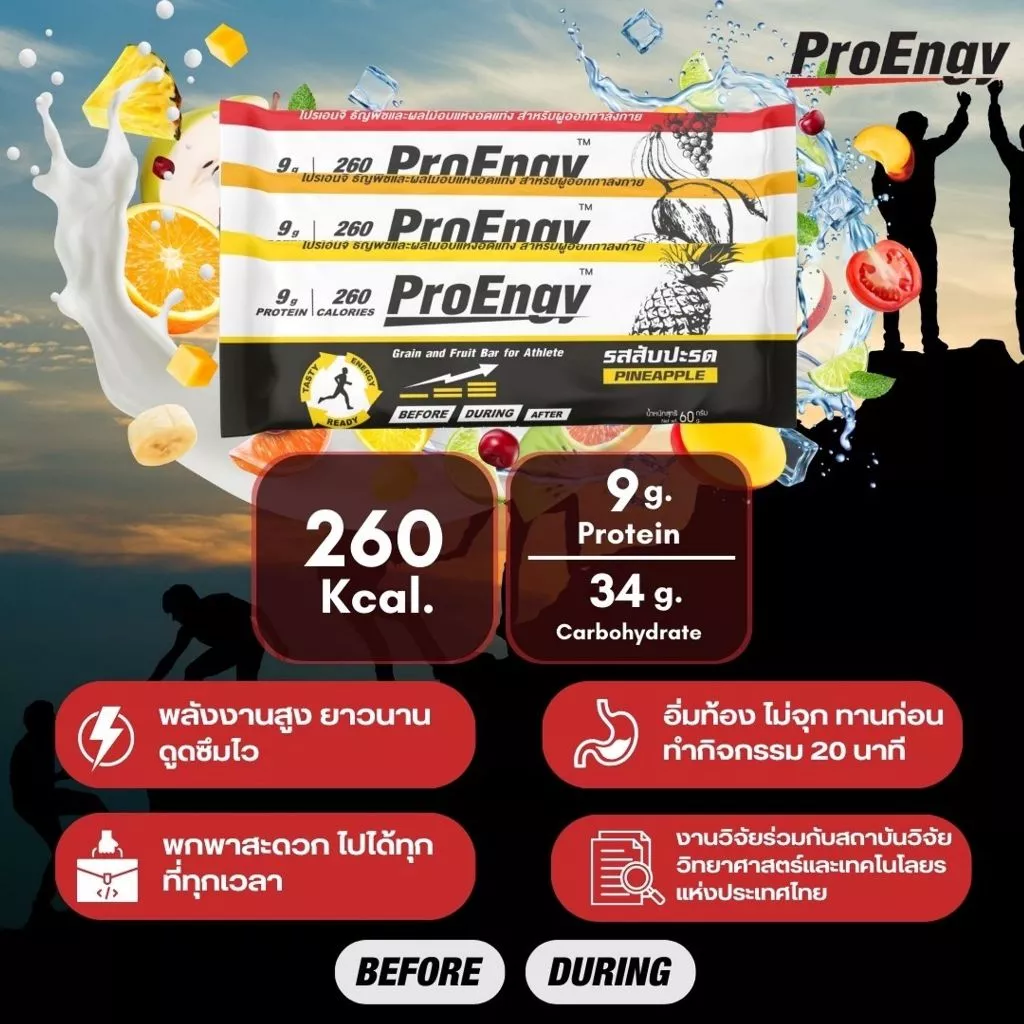 - Before : รับประทานก่อนออกกำลังกาย ประมาณ 20 นาที (1 บาร์)