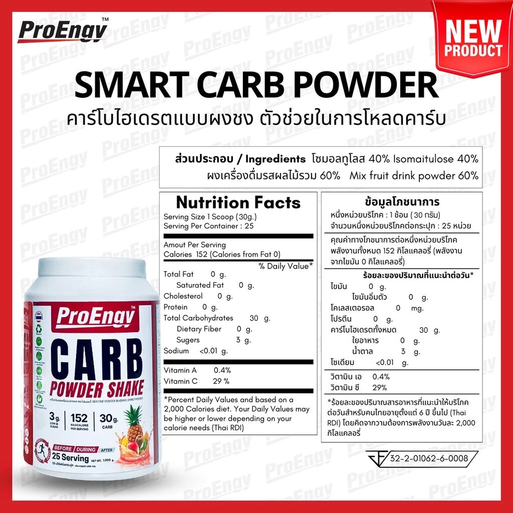 ProEngy :Carb powder 1 unit. (Tropical Fruit Flavor) กระปุกสีฟ้า